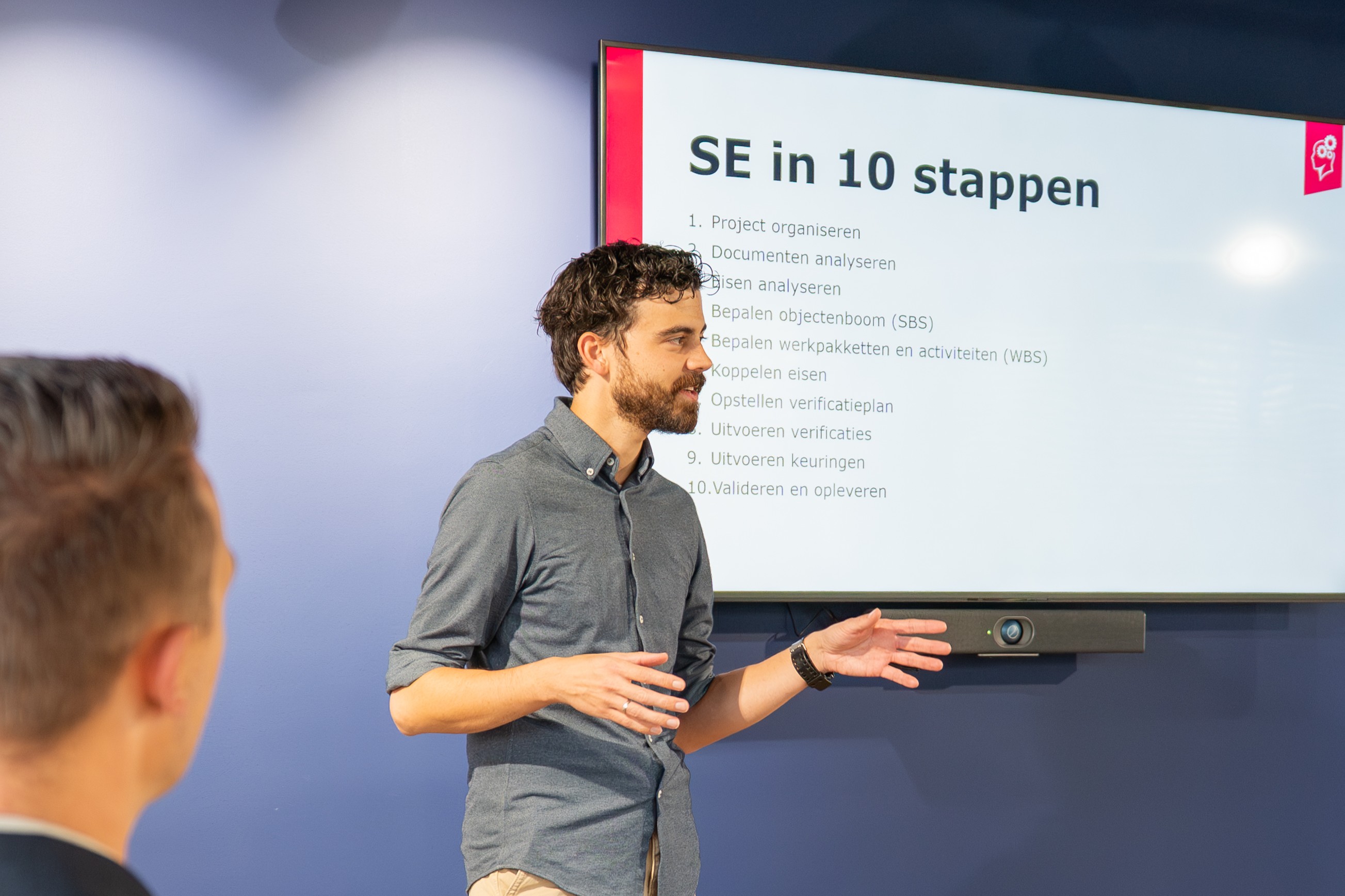 Op basis van de door onszelf ontwikkelde 10-stappenplan worden deelnemers op een interactieve wijze meegenomen in de theorie en praktijk van Systems Engineering (SE).